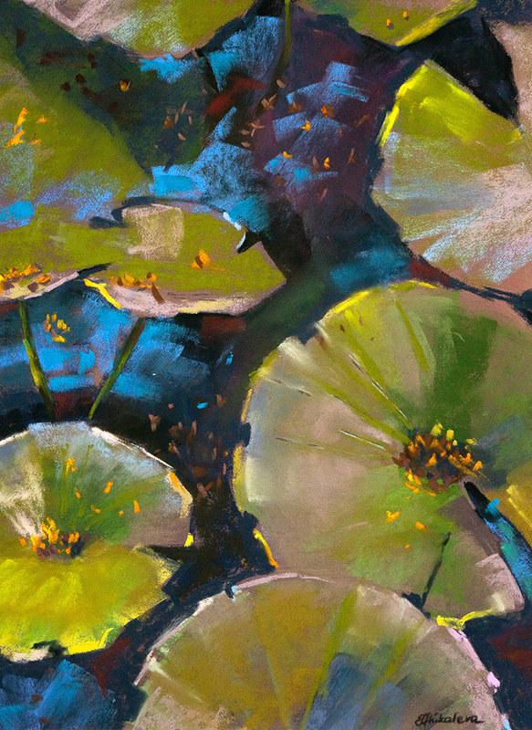 Ich habe mich auf Landschaftszeichnungen, Stillleben und Blumenbilder spezialisiert. Sie drückt ihre künstlerischen Visionen vor allem durch das lebendige und strukturierte Medium der weichen Pastelle aus – ein Medium, das sie wegen ihrer Ausdrucksmöglichkeiten besonders schätzt.