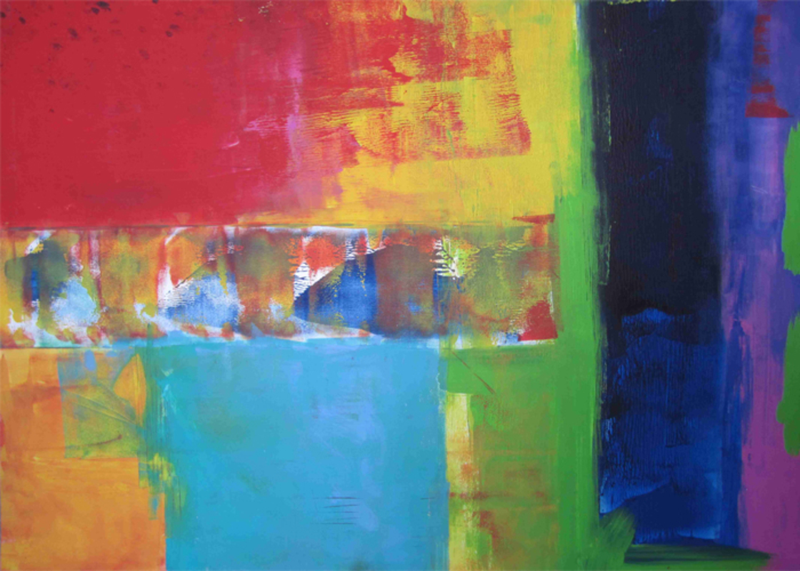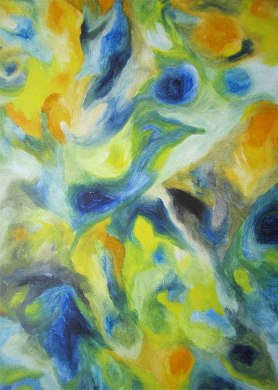 Acryl und Öl. „Malen mit Nadel und Faden“ (Gobelinstickerei) für langjähriges Tagebuchprojekt.